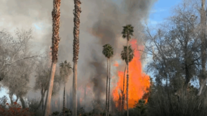 VIDEO: A fire that burned 3.5 acres and nearly 100 palm trees Sunday is now being investigated as a potential case of arson, according to Oswit Land Trust.