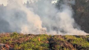 The burning acreage is a mix of wooded land and recently clear-cut land that has massive amounts of underbrush, which can feed fires.